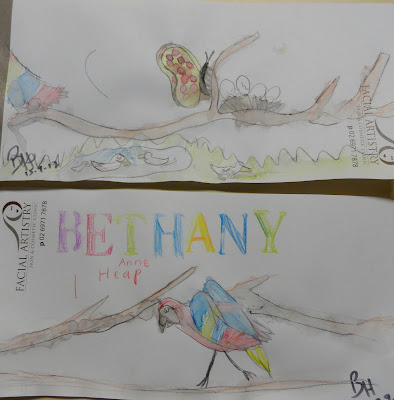 While cleaning and tidying Toby and Bethany's room, I found some of Bethany's drawings. They made me smile.